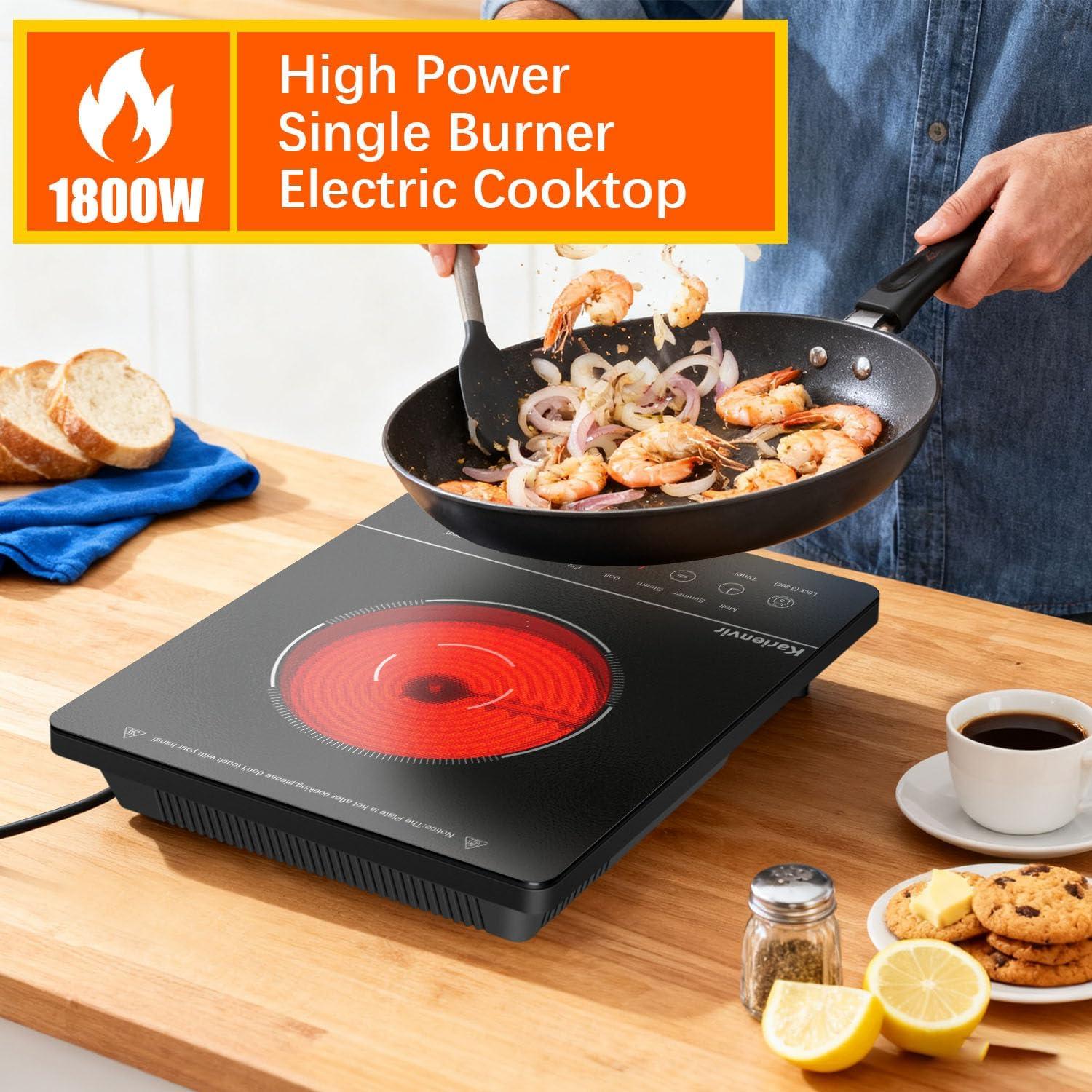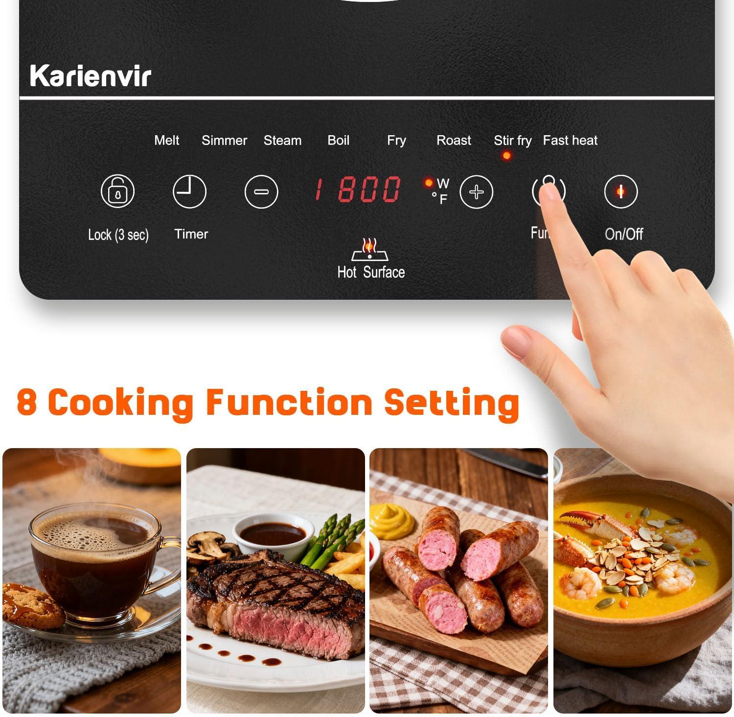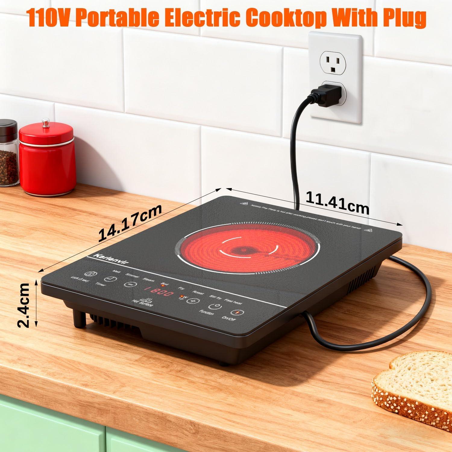 【Dual Control (Anti-Slip Knob + Touch Panel) for Precision】Each burner has an anti-slip textured knob (9 power levels, LED display) for easy heat adjustment. The touch panel adds 99-min timer (press “+”/”-” to set, auto-shutoff), child safety lock (3s hold to unlock), and dual-ring control. This electric stove top lets you simmer oatmeal or sear meats with accuracy—perfect for beginner and pro cooks alike.